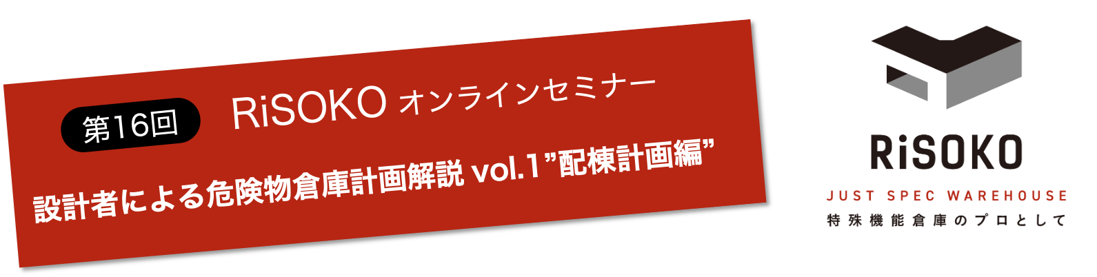 RiSOKOブランドマネージャー松本:リソコセミナー第16回目になります。危険物倉庫計画解説という題名です。今回1回目ということで配置計画編になります。RiSOKOというブランドのブランドマネージャーをしている松本と申します。よろしくお願いします。